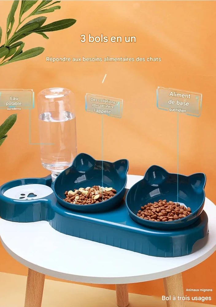Eau et croquettes toujours à disposition dans deux bols pratiques et ergonomiques.
