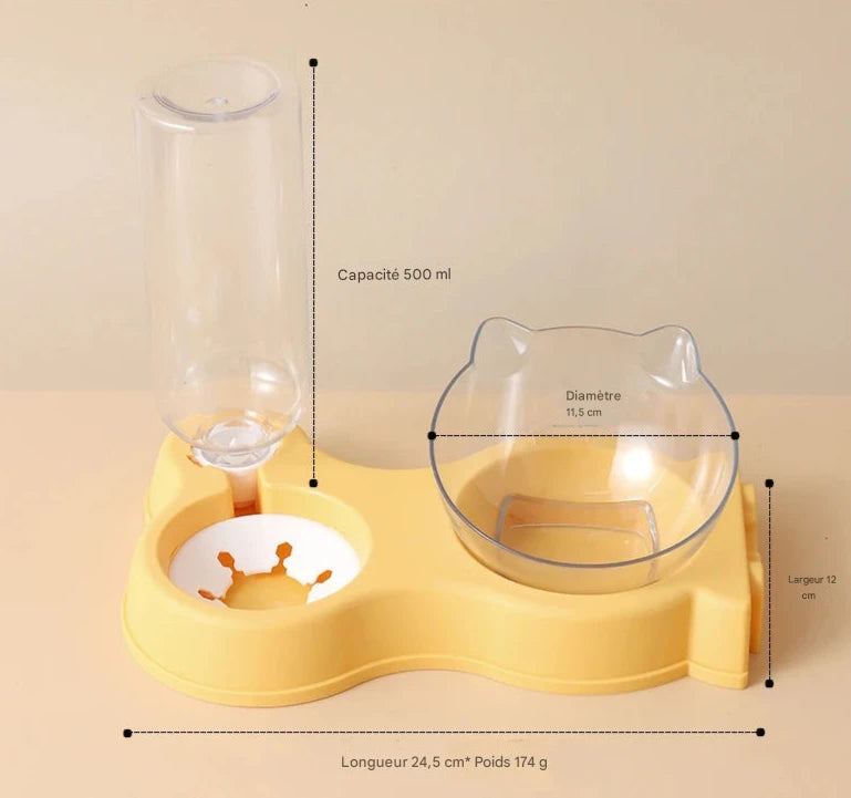 Deux bols distincts pour croquettes et eau, pensés pour simplifier votre quotidien.